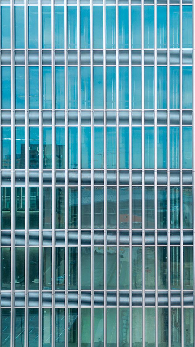De gevelrenovatie van de Dreeftoren springt in het oog. Door het verwijderen van de bestaande borstweringen ontstaat een transparante glazen gevel tot op de vloer, versterkt door verticale aluminium vinnen die het kantoorgebouw een nieuw, eigentijds silhouet geven.